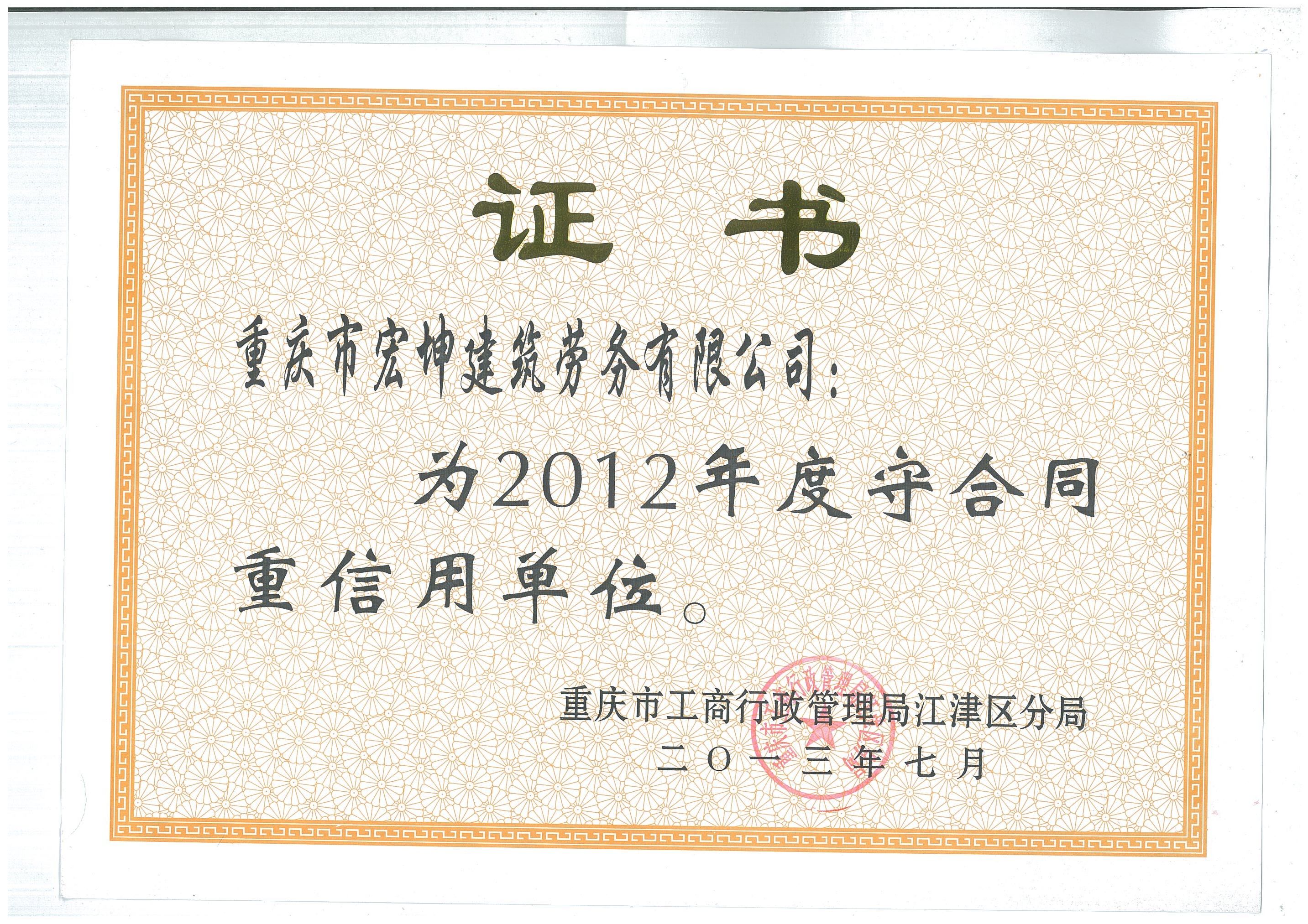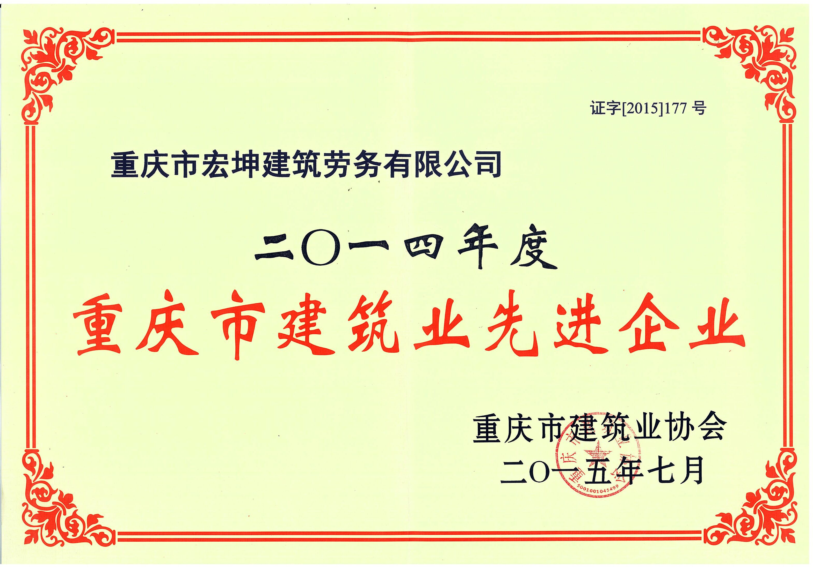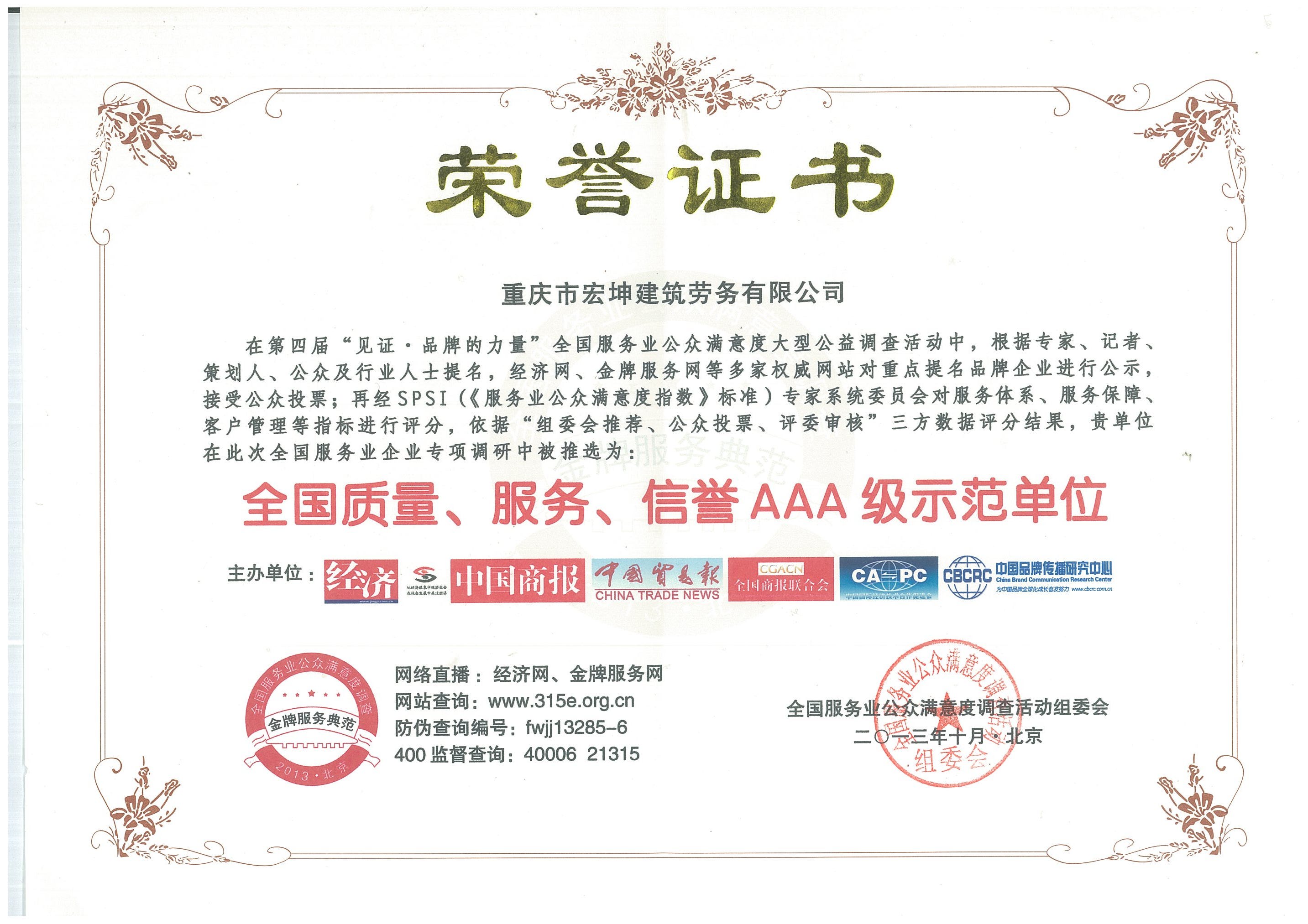 經過多年奮斗,公司先后被評為重慶市建筑業先進企業、重慶市AAA誠信建筑企業以及全國優秀建筑勞務企業,公司領航人張燦國先生,也被評為全國優秀建筑勞務企業經理。